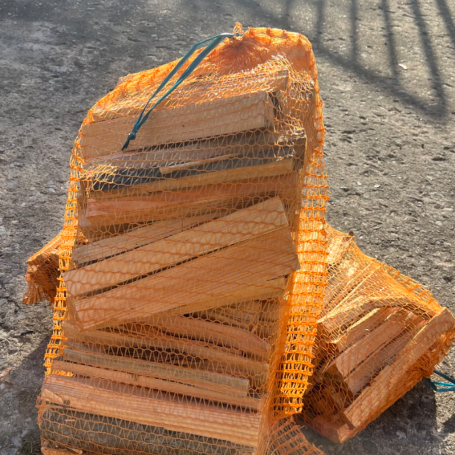 regionales Weichholz im praktischen Netzsack verpackt, maximal 25cm und fein aufgespalten